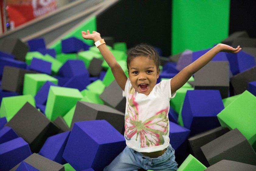 All ages | Kids under 10 must be accompanied by an adult Trampolines | Dodgeball | Ninja activities | Kiddie court (for jumpers under 46 inches tall) | Foam pit | Slamball | Slackline | Fidget ladder | Massage chairs