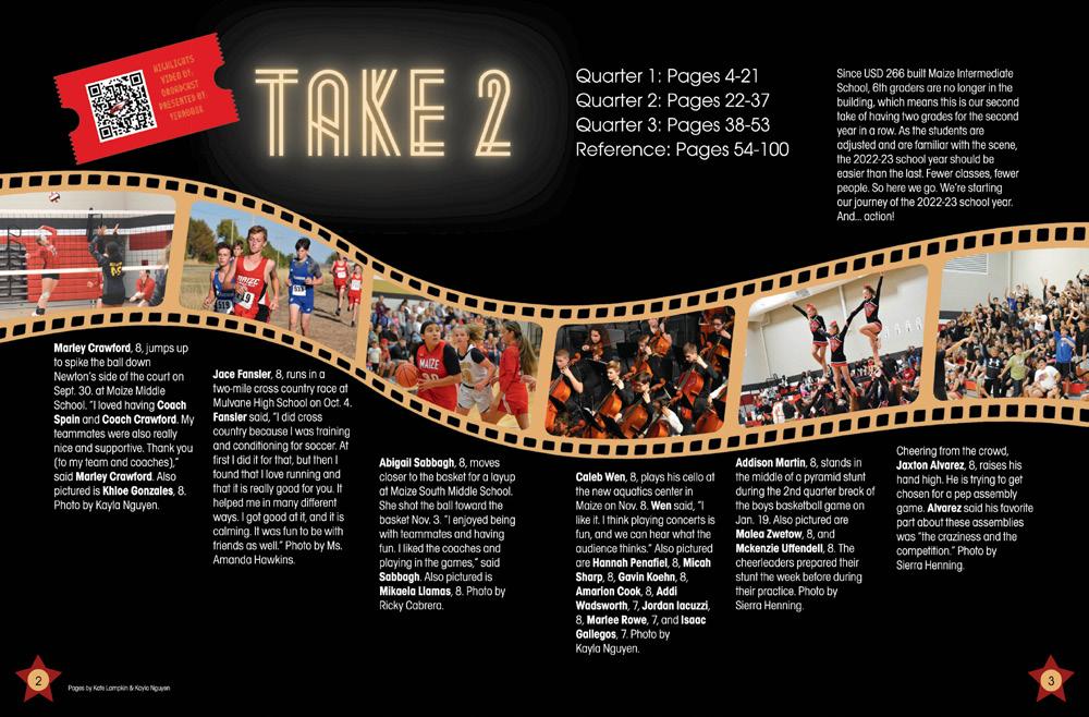 GIVE US A READ: One standout feature that elevates this yearbook is the exceptional long-form copywriting. It’s not just about delivering information; it’s about crafting narratives that made us (and their school!) read it all. The inclusion of reader services, with student names boldly highlighted, adds a personal touch while also making it fun to see who was featured. This little design detail packs a punch when showcasing the staff’s hard work for great inclusion.