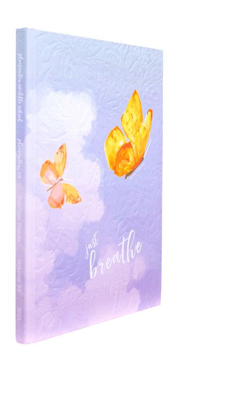 SHOWIN’ OFF: This yearbook truly stands out with its innovative approach, featuring not one, not two, but three captivating color combinations for both covers and endsheets. The Matte lamination and Raised UV are found on three options: An ivory cover with a blue endsheet, a blue cover with a green endsheet and green cover with ivory endsheet — creating a visually striking palette that sets the tone for an engaging visual journey. Because “that moment when” you have three different cover styles ... is a good one.