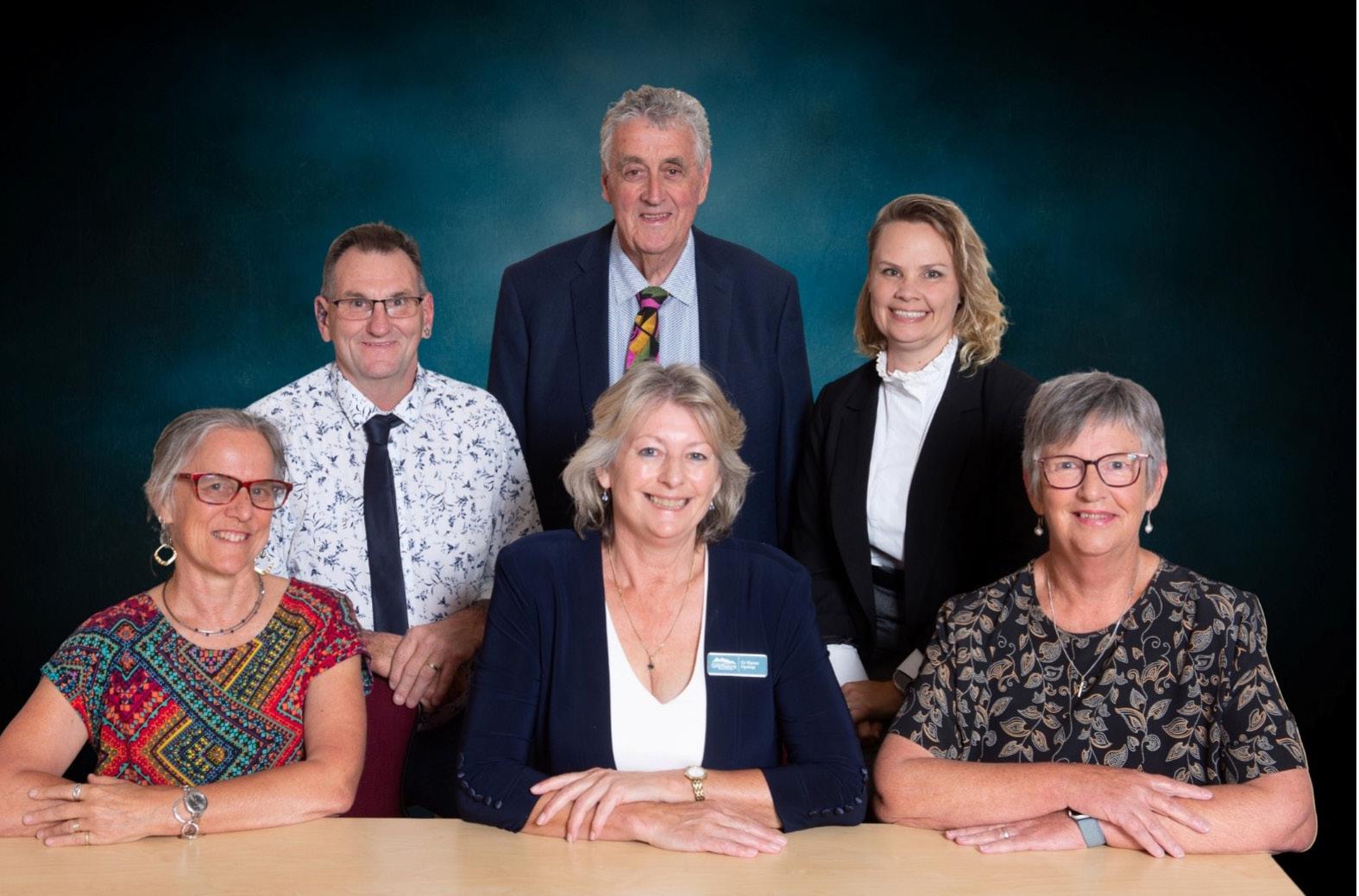 From left, back, Cr Jack Blake, Cr Murray Emerson and Cr Justine Hide; and front, Cr Karen Probst, Cr Karen Hyslop and Cr Jenny Greenburger.