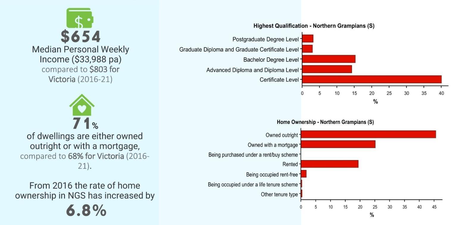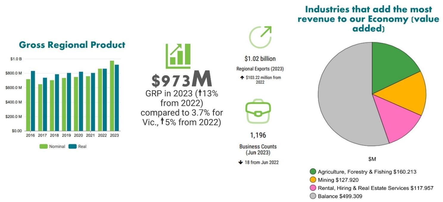 • Use sources including the SGS Cities and Regions Index Microsoft Power BI to provide the socio-economic background for our region. Describing the data is intended to provide insight into what is happing in Northern Grampians, compared to other areas. The data will tell a story of risks and benefits of living in Northern Grampians.