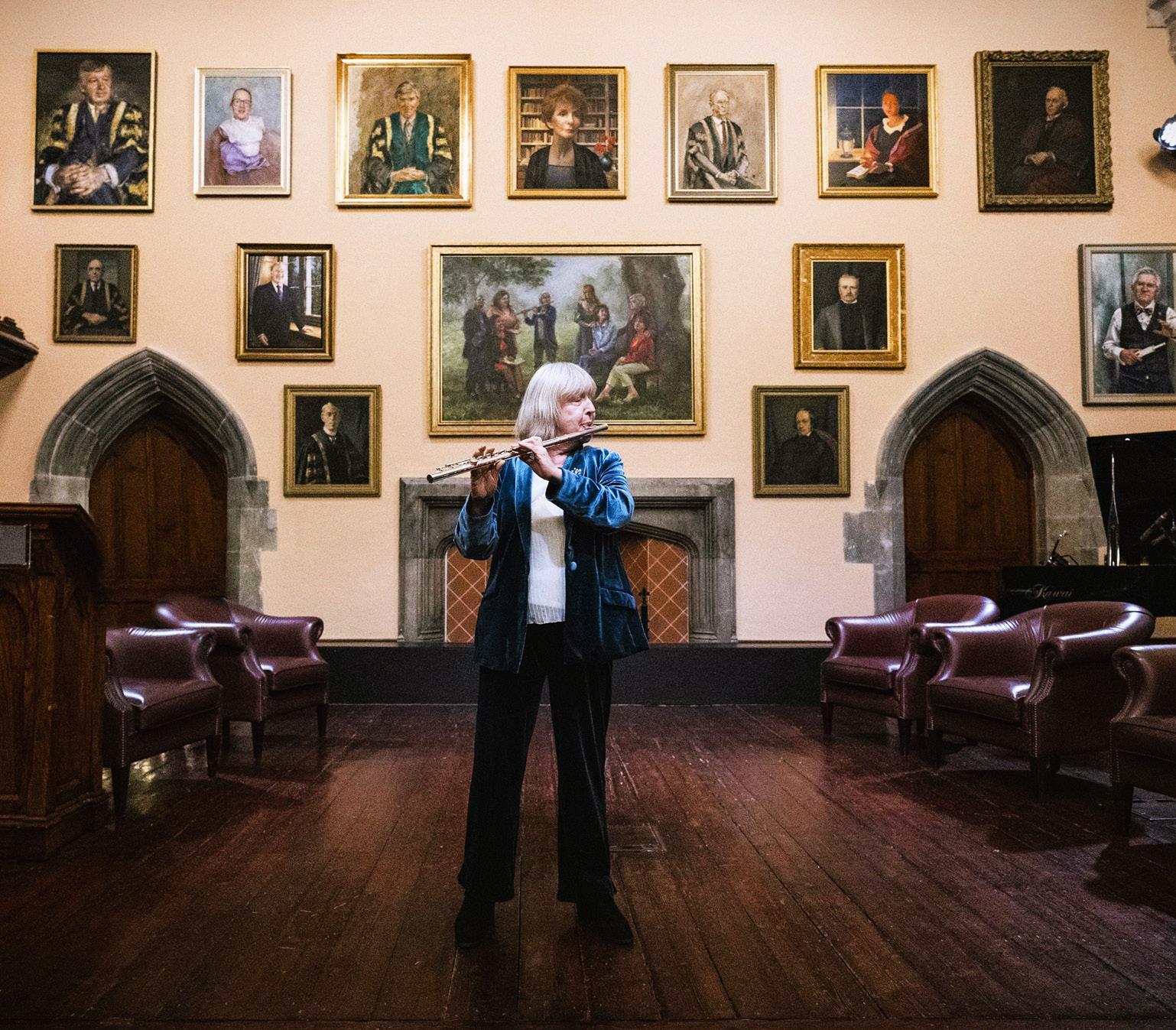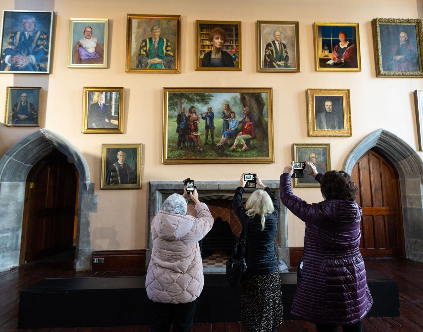 Cover: Dr Evelyn Grant performs in front of newly unveiled portraits in the Aula Maxima as part of Accenture’s Women on Walls ‘In Conversation’ Event at UCC.