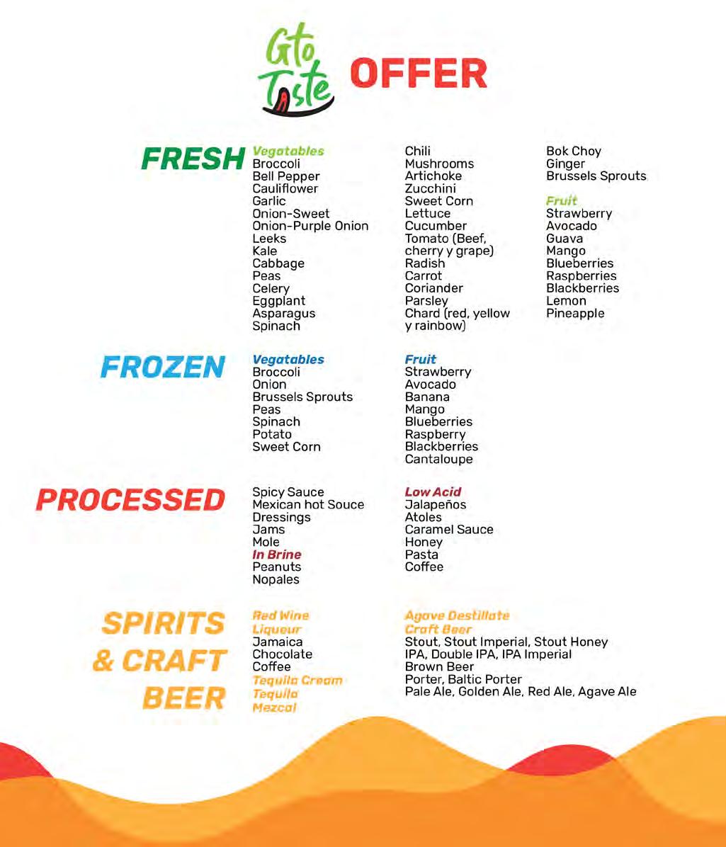 · Strawberry · Chilli · Onion · Avocado BAFANA FARMS Purísima del Rincón, Guanajuato · Carrots · Corn seed · Pumpkin · Cantaloupe