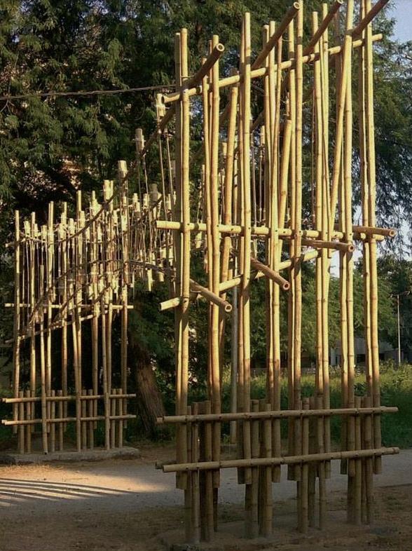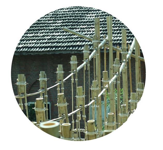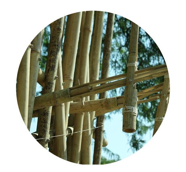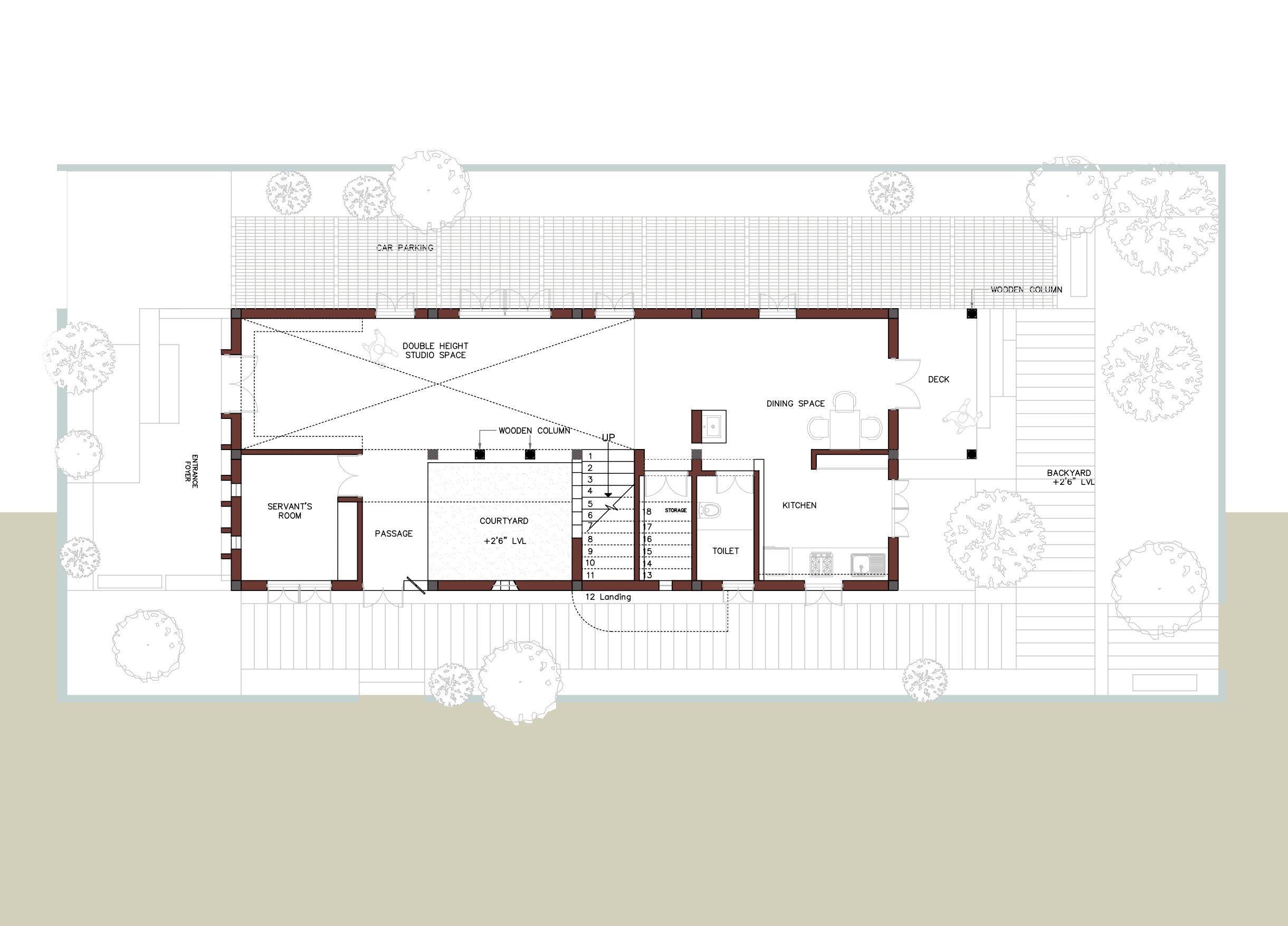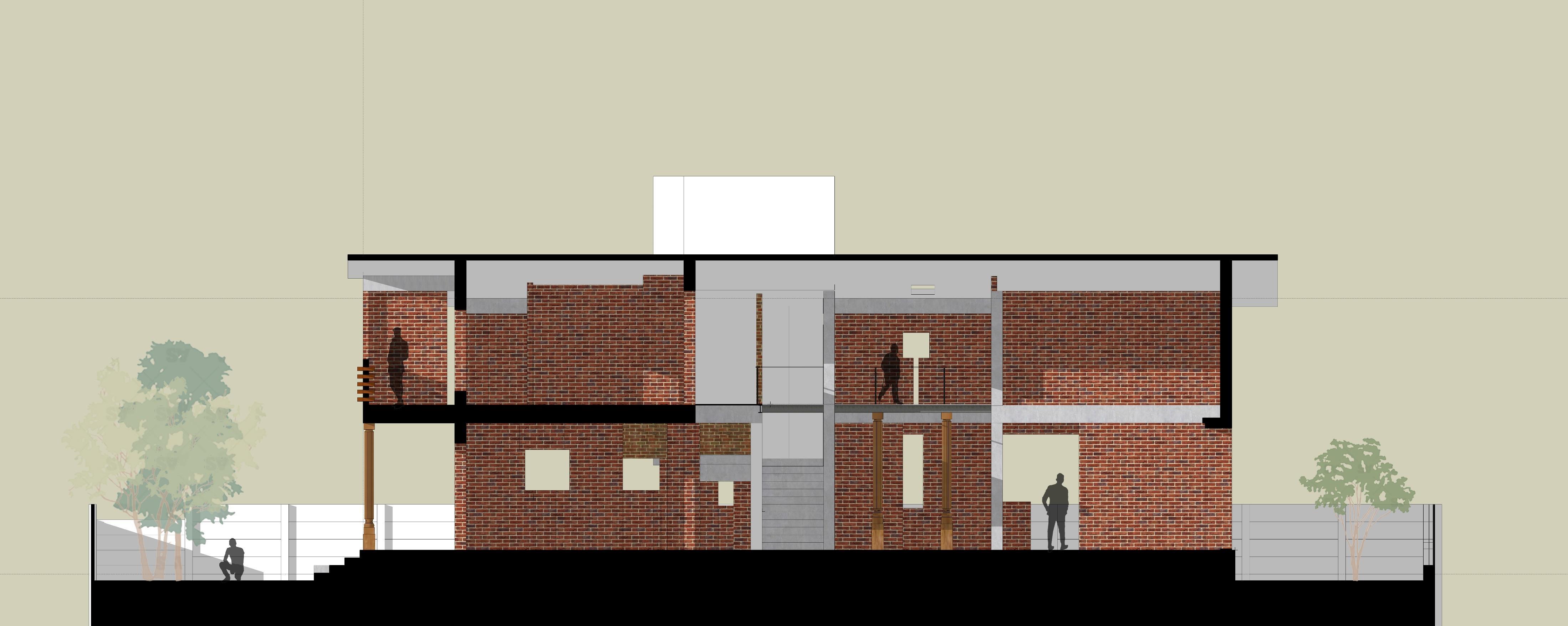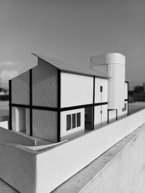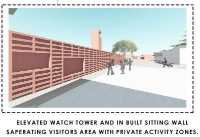 Provides huge volumetric internal spaces for common gathering areas The materials used are stone and plastered brick