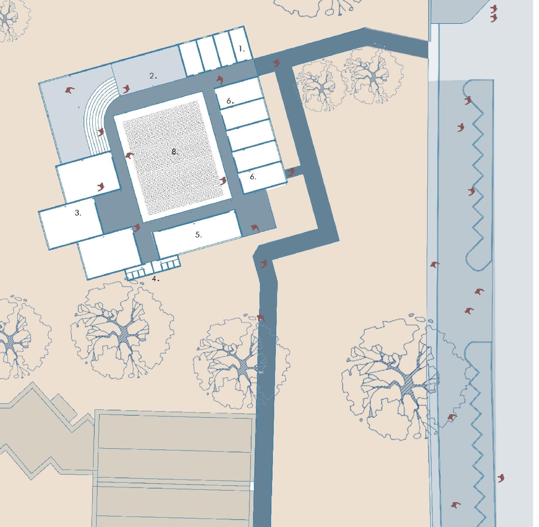 Camus has different scale plazas and courtyards either paved or natural ground which cause the water logging, where the outer periphery has the bhukhi nala passing by where the water run off through its natural slope.