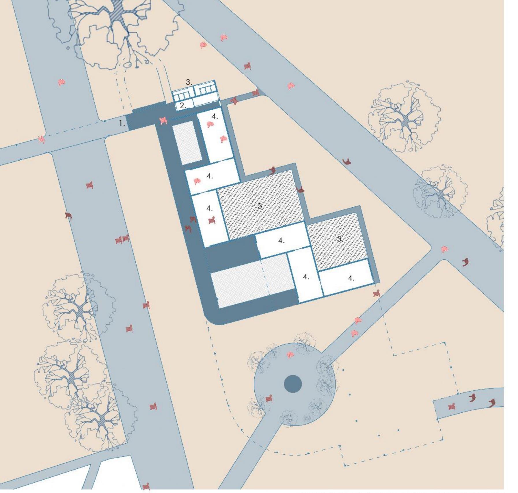 BUIT OF THE CAMPUS HAVING MEDIUM DENSITY STRUCTURES CREATES DIFFERENT SPACES LIKE COURTYARDS WITHIN AND THE PLAZA WHICH HAS THE VISUAL AND PHYSICAL CONNECTIVITY THROUGH THE ELEMENTS OF BUILT