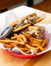 CLASSIC FRENCH DIP: SLOW-ROASTED PRIME RIB, SPICY HORSERADISH SAUCE ON A BAGUETTE WITH A SIDE OF AU JUS