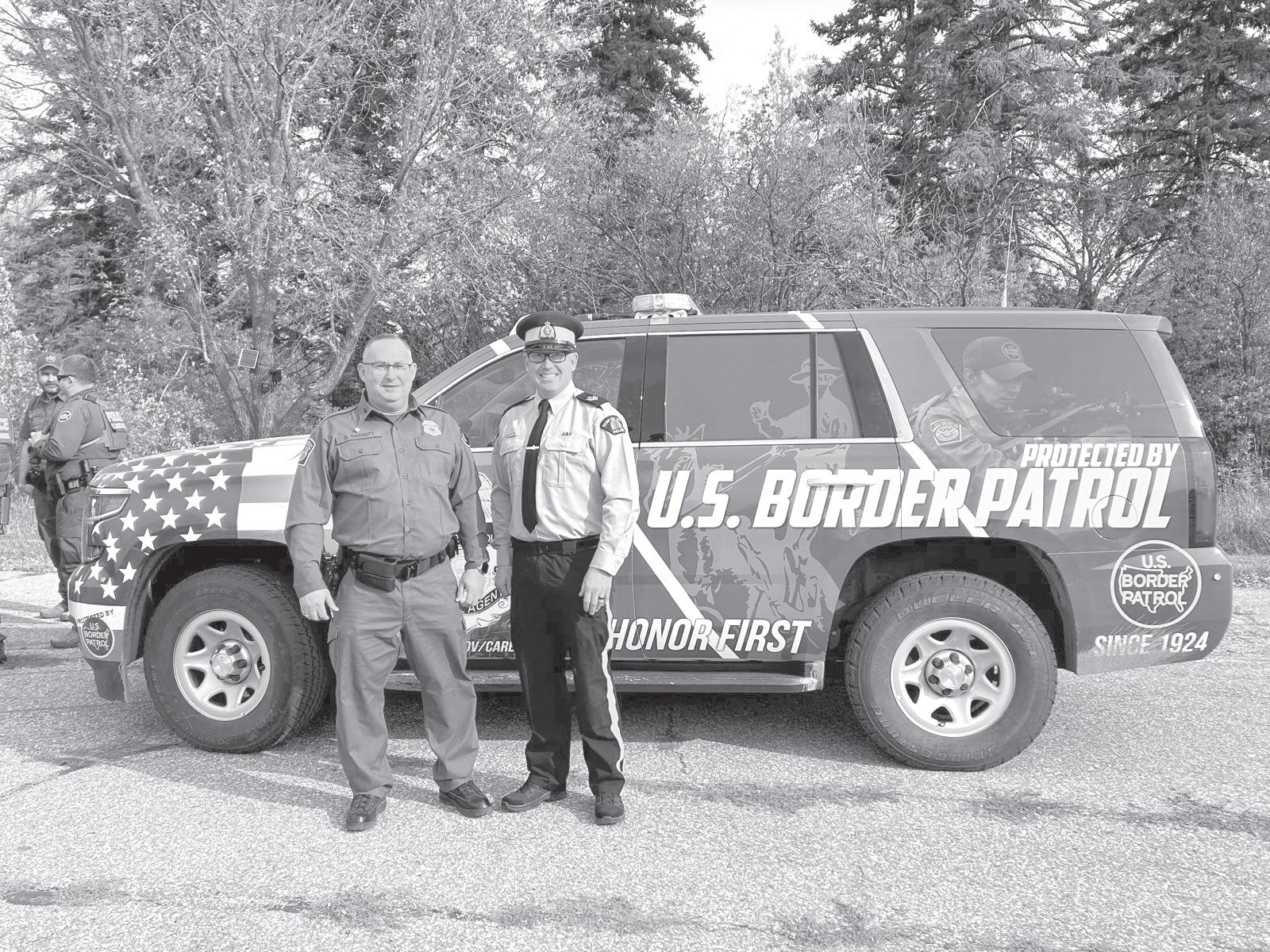 Manitoba RCMP officers and agents from United States Border Patrol recently met, first in Pembina, North Dakota and then at Emerson, Manitoba, to talk about border safety and showcase some of the equipment used in preventing border incursions.