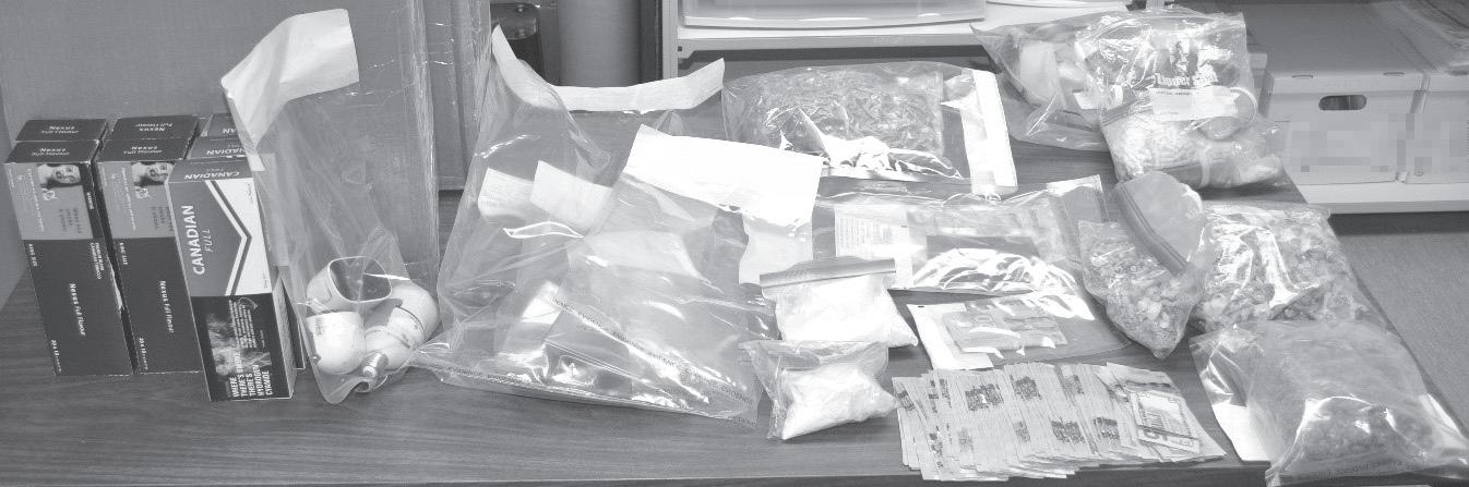 Police seized 353 grams of cocaine, 700 grams of illicit cannabis, 343 grams of psilocybin, 168 Gabapentin pills, 192 Tylenol 3s, 30 amphetamine pills, and more than 15,000 unstamped cigarettes. An undisclosed amount of Canadian currency was also seized.