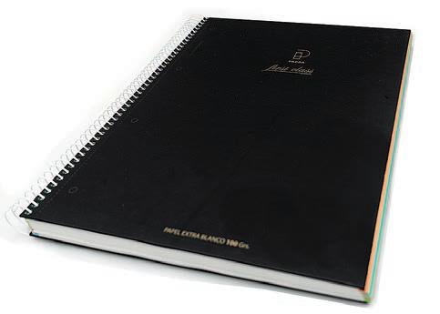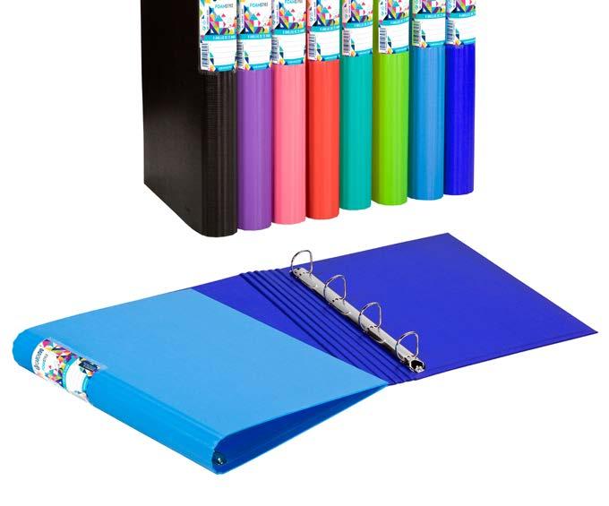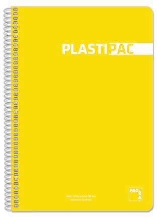 Carpeta con espiral de plásticoy cierre con goma. Cubierta de polipropileno con portada canguro. Fundas de polipropileno estraíbles tamaño A4. Disponible en colores surtidos.