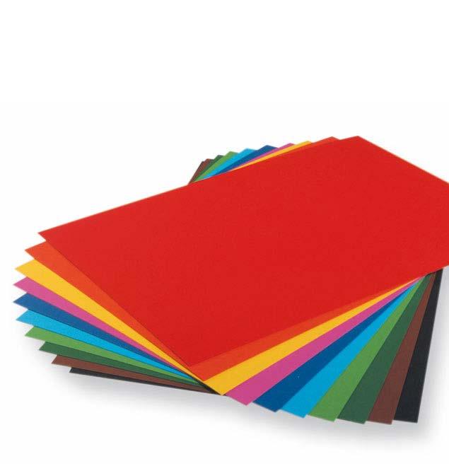 Cartulina de 50 x 65 cm de 185 gr. ligeramente satinada y coloreada en pasta con pigmentos sólidos a la luz. Paquete 25 cartulinas.