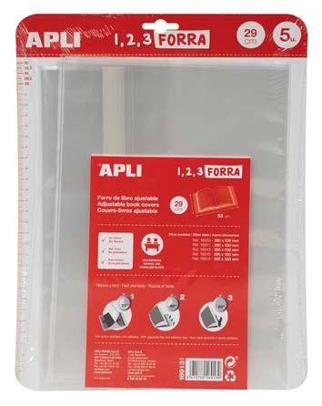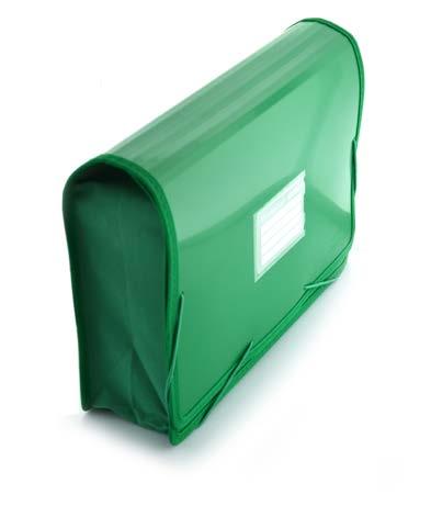 Transparente con lomo extensible y solapa con cierre de velcro. Medidas: 33x25x3 cm.