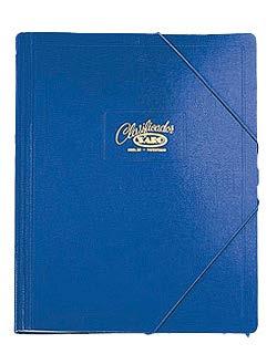 Carpeta A4 con 60 fundas, cuerpo en color y portada personalizable. Dispone de fundas extra cristal con apertura en la parte superior y pestañas indicadoras con adhesivos. Disponible en colores surtidos: azul, morado, naranja, rojo y verde. Se venden por unidad. Medidas: 30,8 x 22,7 cm.