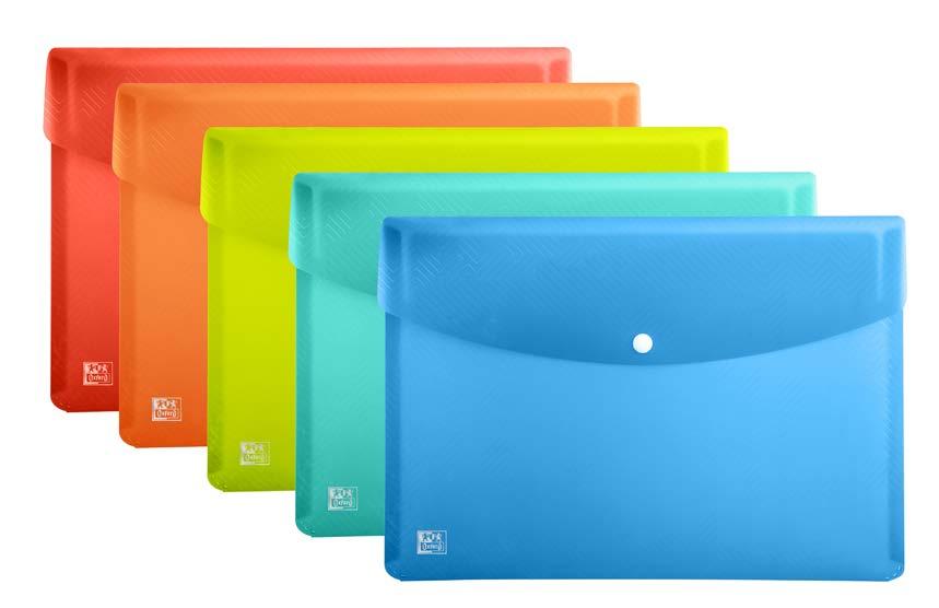 Sobre tamaño cuarto de polipropileno con cierre de velcro. Colores surtidos.