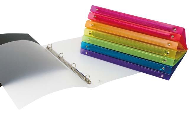 Carpeta de plástico con tapa flexible y con fundas transparentes soldadas al lomo. Tamaño folio. Disponible en colores surtidos.