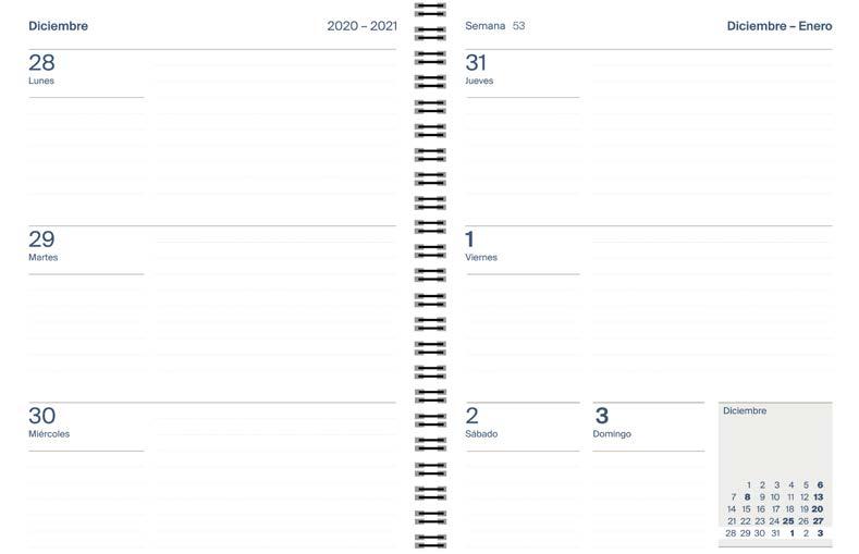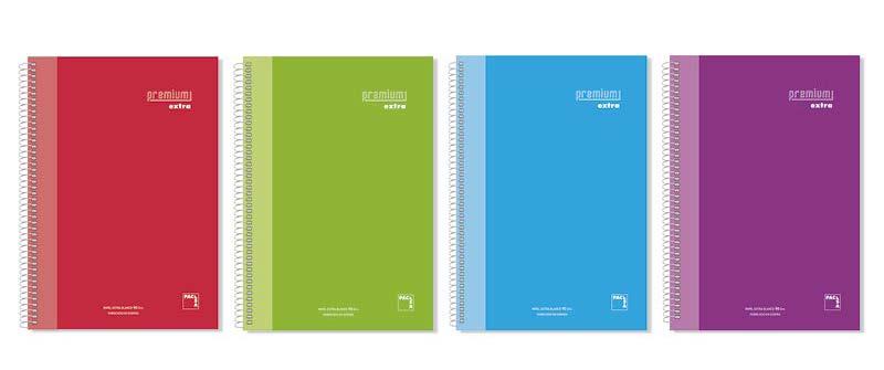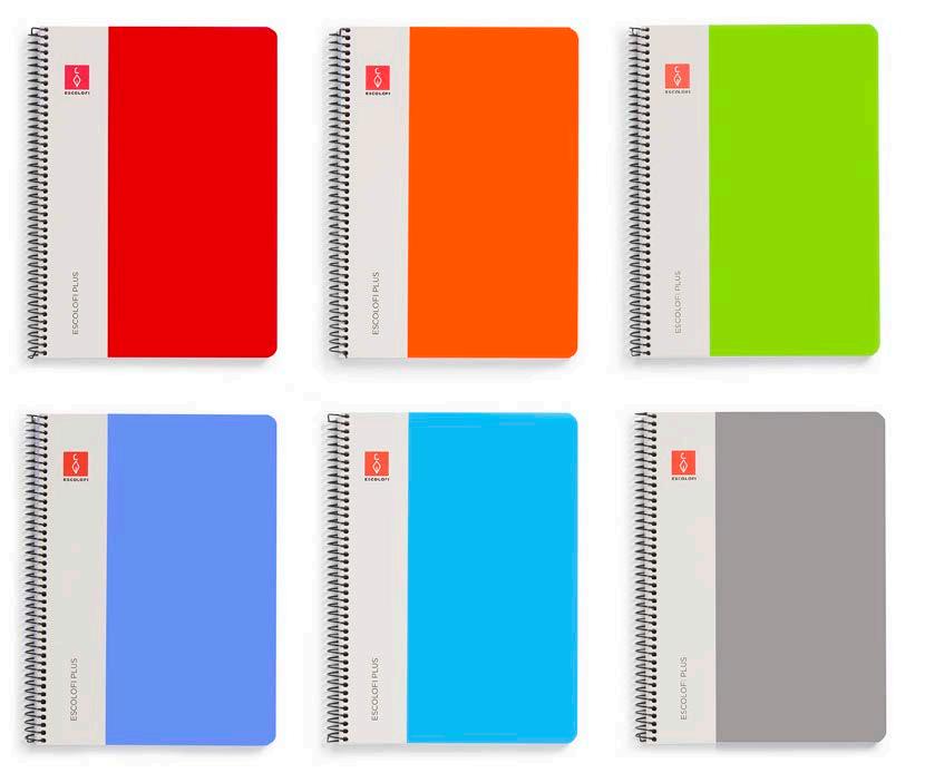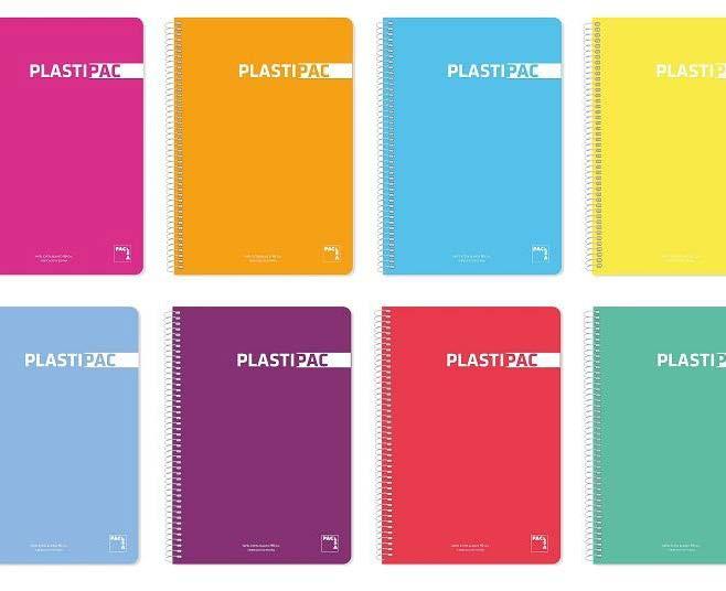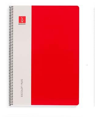 Carpeta A4 de plástico con espiral, fundas de polipropileno extra, tapas flexibles y cierre con gomas.