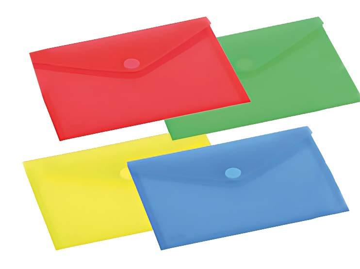Sobre realizado en plástico translúcido rígido con cierre de clip. Colores surtidos.