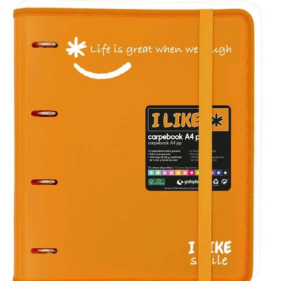 Carpeta A4 con 60 fundas, cuerpo en color y portada personalizable. Dispone de fundas extra cristal con apertura en la parte superior y pestañas indicadoras con adhesivos.