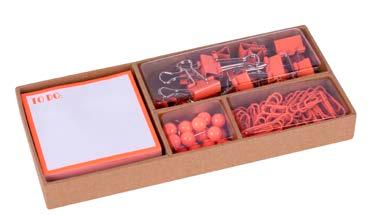 Carpeta A4 con 13 espacios. Dispone de etiquetas para los separadores, una etiqueta identificativa en el lomo del archivador y goma en la solapa. Colores surtidos.