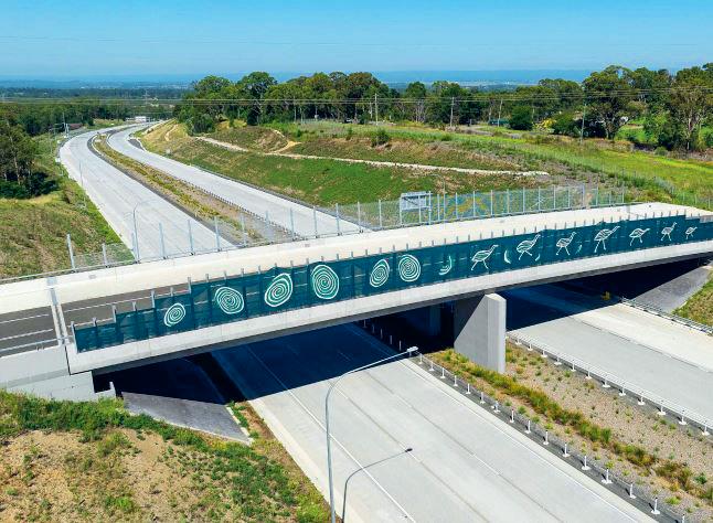rCeremony Time’ overbridge artwork depicting the Dharug emu story. Created in co-design by Balarinji Studio with Dharug-connected Aboriginal artists | Image: Transport for NSW | Article: Catherine King MP