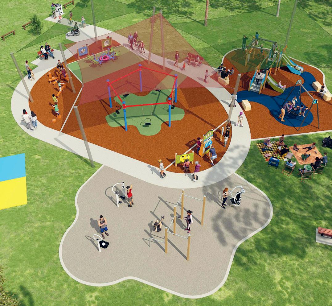 Construction is underway on the new play area at Sales Park, Luddenham, with completion expected by late June. The upgraded space will feature a range of new play and outdoor exercise equipment selected by the community, including a multi play unit with climbing elements and slides, a nest swing, balance features, and imaginative play and musical panels. New outdoor fitness equipment will also be installed, such as an aerobic walker, body twist, pull up bar station, and shoulder press. Importantly, the upgrades completed in 2019 will be retained as part of this project, including the swing set, accessible rocker, handball court, and shade sails. This project is proudly funded by the NSW Government and Penrith City Council.