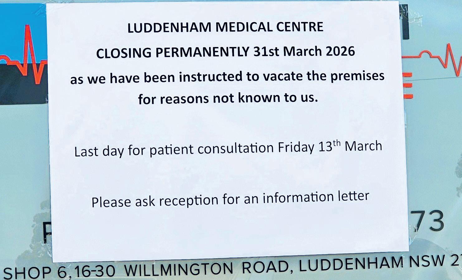 Sad to see another business moving out of Luddenham, Luddenham Medical Centre, Dr Dutt, is closing, with the last day for patient consultations on the 13th of March. Luddenham needs more people.