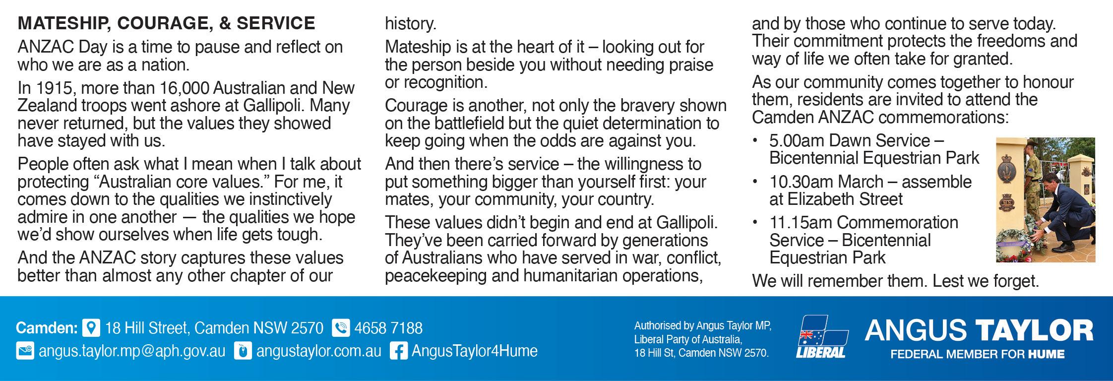 The Camden RSL Sub-Branch invites the community to once again come together to commemorate ANZAC Day 2026, honouring the courage, sacrifice, and enduring legacy of the Australian and New Zealand servicemen and women who have served our nation.