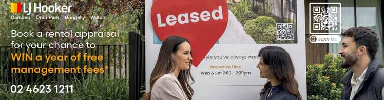 www.oranparkgazette.com.au September 2023 3 Servicing All Areas P: 4655 2800 M: 0400 995 640 A: 17 Hill Street, Camden F: 4655 2833 Services tailored for your loved one Let my family care for you personally • Camden’s Only Locally Owned and Family Managed Funeral Home • 24hrs – 7 Days • Pre Arranged Funeral Plans Available • All Financial And Personal Circumstances Considered Gaz.advert.artwork.qxp_Layout 1 14/9/20 10:55 am Page 1