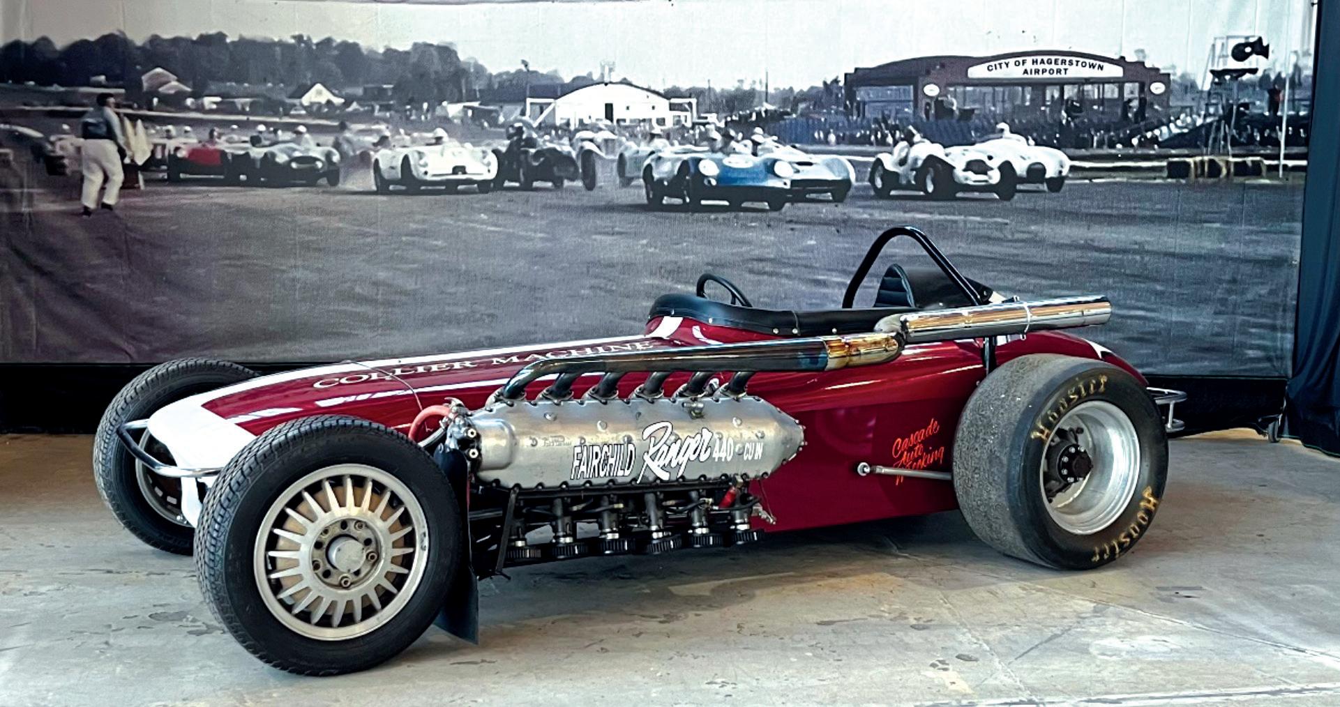 THE HAGERSTOWN AVIATION MUSEUM HAS RECEIVED another piece of aviation history, but it’s not an airplane. On longterm loan from the Museum of American Speed in Lincoln, Nebraska, a race car with an airplane engine is now on display. The engine, known as the “Ranger,” was manufactured by the Fairchild Engine Division and used by Fairchild to power the Fairchild PT-19 trainer of the 1940s. After World War II the in-line six-cylinder air-cooled engines could be purchased for about $50. Racing enthusiasts modified the 440-cubic-inch engine to produce about 400 horsepower. Many found their way into race cars in the 1950s and won numerous races. Also, in October the museum received an A-10 Thunderbolt II aircraft for permanent display. Both are on display at the Hagerstown Aviation Museum.
