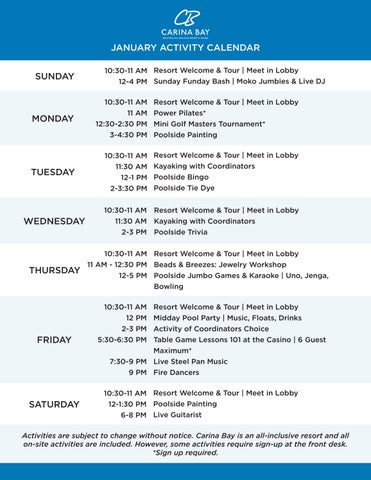 Activity Calendar - Carina Bay