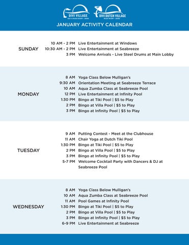 Divi Village Golf Activity Calendar