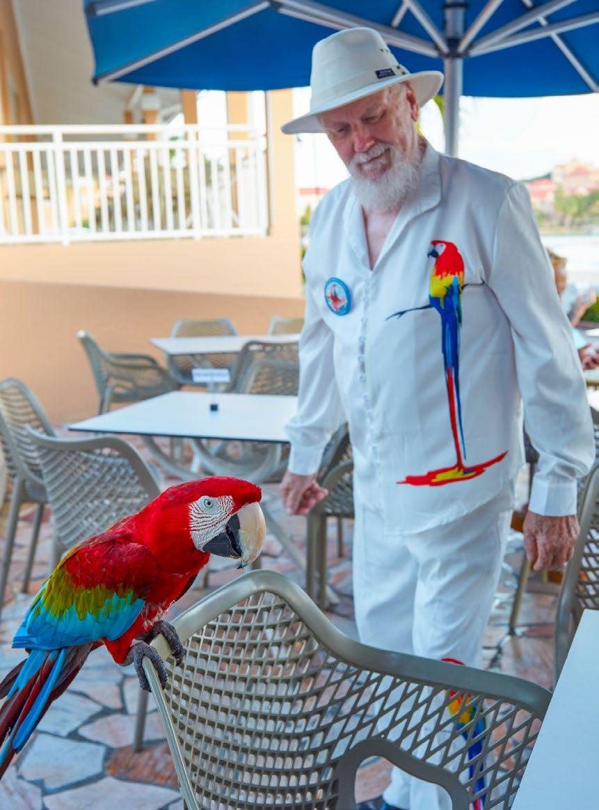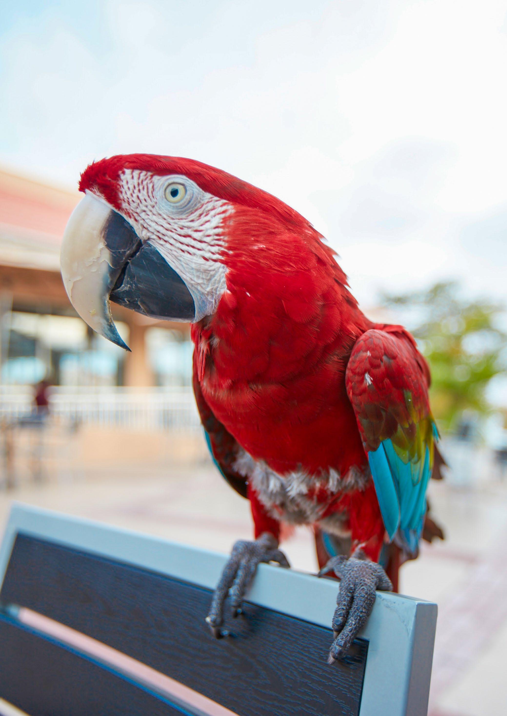 She’s a star and she knows it! Make sure you have your camera ready—our resident red and green macaw parrot, Gizmo, loves to dance, strike a pose, and cozy up with her favorite guests and staff members. You’ll often find her preening and shaking her tail feathers at her namesake Gizmo’s Burger Bar.