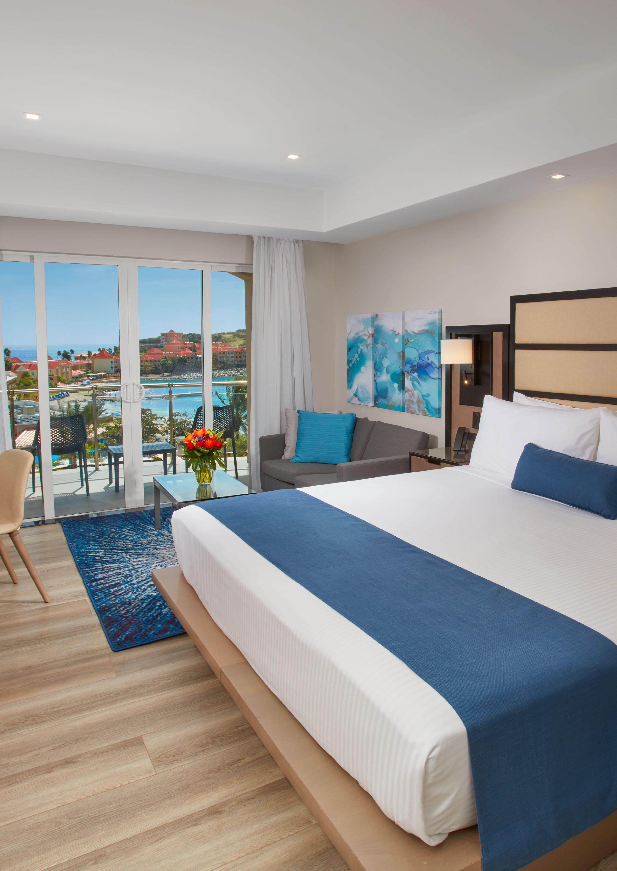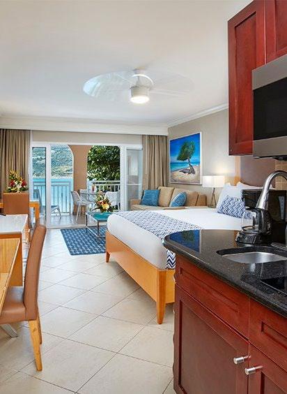 Unwind, refresh, and cool down in our modern suites with colorful Caribbean decor and fabulous amenities that make you feel right at home. Each suite offers a private balcony or patio so you can soak up the sun while enjoying sweeping ocean views.
