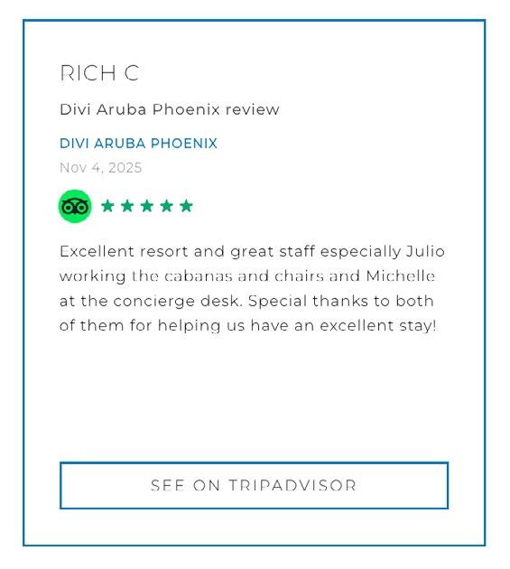 real guest experiences and recognition across our resorts, as well as a look at Divi Cares (page 13), where we continue to give back to the communities that make our islands so special.