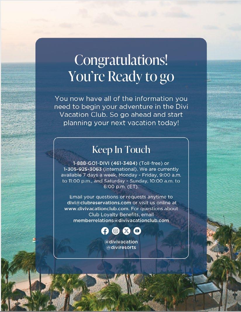 We’re also proud to introduce an exciting new chapter for Divi Vacation Club. On pages 8 and 9, you’ll discover our fresh new look — a rebrand that reflects our commitment to innovation, personalization, and helping you get the most out of your membership. At its core, this evolution is about you — enhancing the way you travel, connect, and create lasting memories with us.
