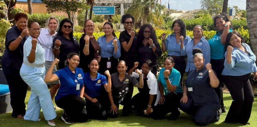 Celine Van Meer, Divi Flamingo GM, is proud to pose alongside her incredible female team as they celebrate International Women’s Day!