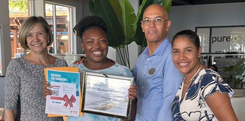 Anne-Marie Brooks, GM of Divi Little Bay, is happy to celebrate her hardworking employees; recognizing Sandrine from the Front Desk team as Employee of the Year alongside Colin and Angelica.
