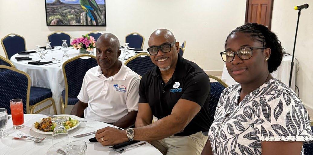 Divi Southwinds GM, Charles Maynard, says cheese alongside valued team members at the resorts’ Staff Appreciation Day luncheon.