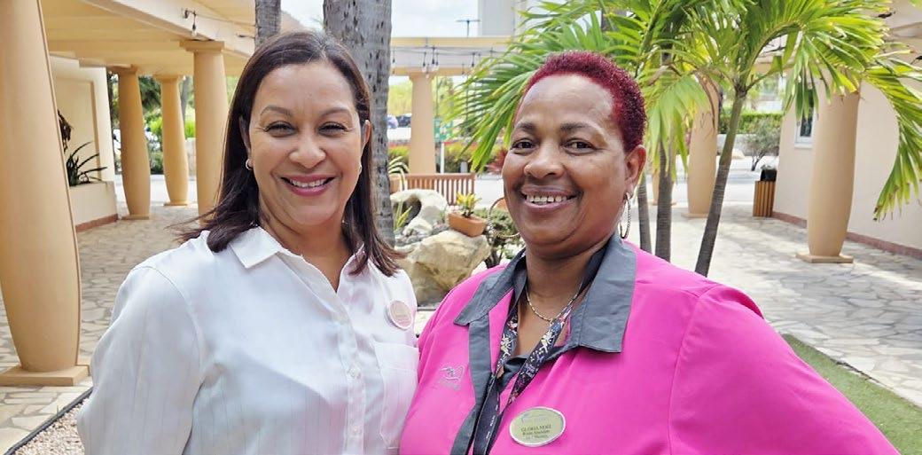 Divi Aruba Phoenix GM, Pearl Lake, smiles alongside longtime room attendant Gloria Noel.