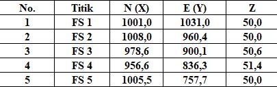 1. Pada saat pembuatan garis kontur, diperlukan data koordinat (X,Y) beserta elevasi atau ketinggiannya. Berikut merupakan data yang sudah didapatkan dari pengukuran menggunakan total station :