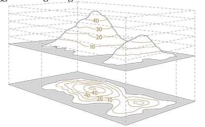 Gambar 4.3 Ilustrasi bentuk kontur dalam peta topografi