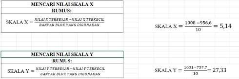 2. Kemudian hitunglah interval dari sumbu x dan y, didapatkan hasil perhitungan sebagai berikut :