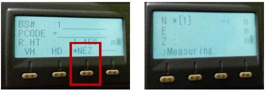 3. Setelah “ENTER” maka selanjutnya arahkan alat ketitik BM yang telah dipasang prisma, setelah tepat maka pilih “MEAS” dengan tekan tombol F3,