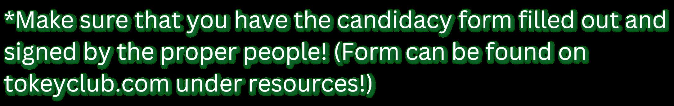 TO RUN FOR LTG, THE CANDIDATE MUST PROVIDE THE PROPER CANDIDACY FORM TO THE CURRENT LTG, ME, AND THE REGIONAL ADVISOR. WITHIN 10 DAYS OF THE ELECTION, THE LTG-ELECT NEEDS TO FILL OUT AND SUBMIT THE OTHER REQUIRED FORMS (ALL FOUND ON T-O KEY CLUB WEBSITE)