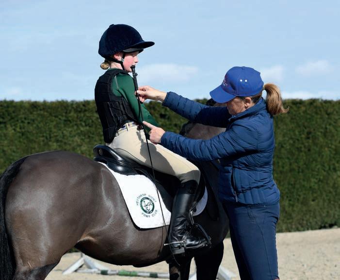 When you’re on board, think about where you’re sitting – is your weight evenly distributed and are you sitting in the middle of the saddle? To work out whether you’re central, check that there’s a straight line from your pony’s poll and mane to the zip of your jacket.