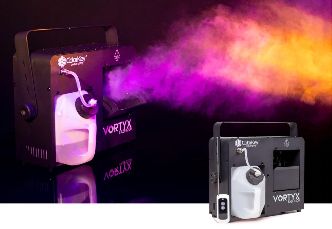 Mixware brand ColorKey has released the VORTYX Faze haze effect. The faze machine transforms a light show by revealing the beams midair, adding depth, and creating an immersive experience. From intimate venues to large productions, the right atmosphere ensures your lights perform at their best. The 1,200-watt machine delivers a haze-like atmosphere with fog-fuid effciency. Its powerful 3,000 CFM has up to 11 hours of runtime in a single tank. The unit features a quick, two-minute heat-up time and if offers multiple control options: DMX, included DMX remote, continuous and times output.