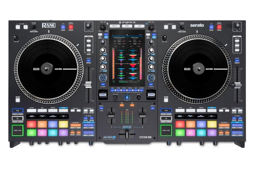 RANE, an inMusic brand, has released the RANE SYSTEM ONE. As the frst RANE product with onboard Engine DJ, the SYSTEM ONE’s OmniSource system architecture lets open-format DJs simultaneously mix between USB drives, SD cards, music streaming services, and DJ software sources like Serato DJ and Algoriddim djay all without interruption. Paired with an array of FX features and multiple ways to DJ with Stems, the SYSTEM ONE was designed to unlock new levels of creativity. The system features 7.2-inch aluminum motorized platters and its hi-def touchscreen brings the new RGB waveforms to life and features customizable view options while placing navigation and performance controls at the DJ’s fngertips. With Playlist Banks, three dedicated buttons give DJs instant access to their favorite saved media, streaming, or Serato playlists.