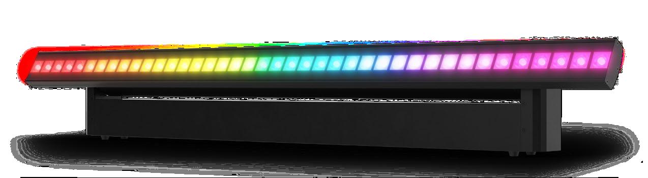 washes, dynamic chases, and eye-catching pixel effects. The unit offers multiple control options. Users can choose between 7-, 12-, and 20-channel DMX modes for precise programming or take advantage of the unit’s 60 built-in programs for quick and effective operation, along with seven amber LED zones and 66 RGB LED zones of control. The fxture also supports sound active and primary/secondary confgurations.