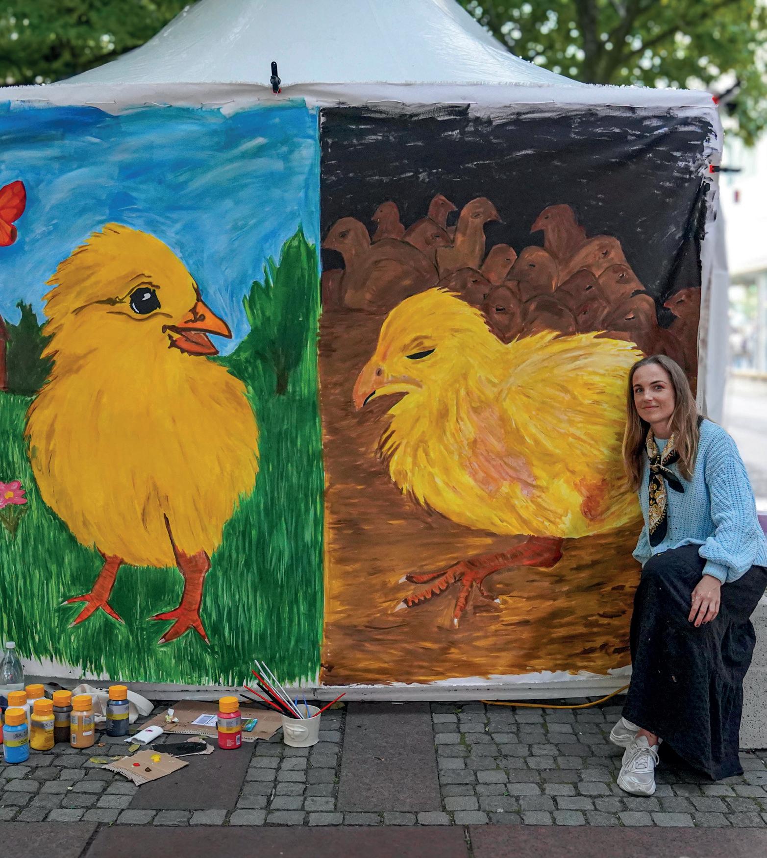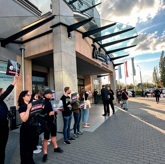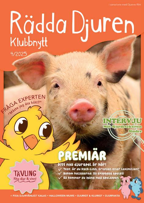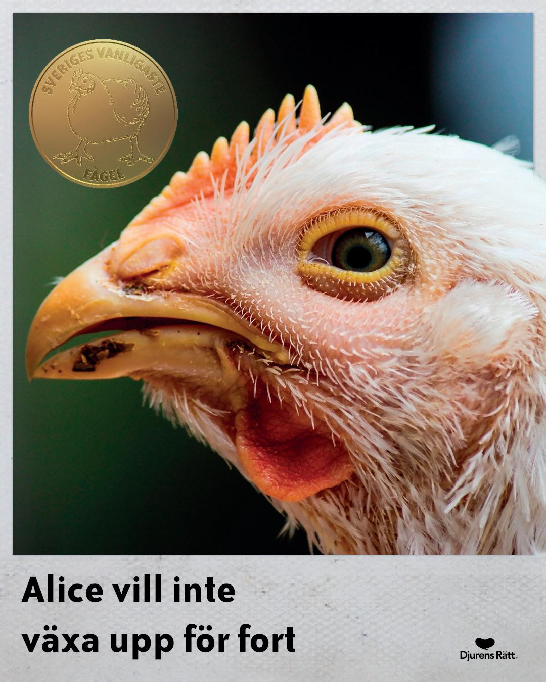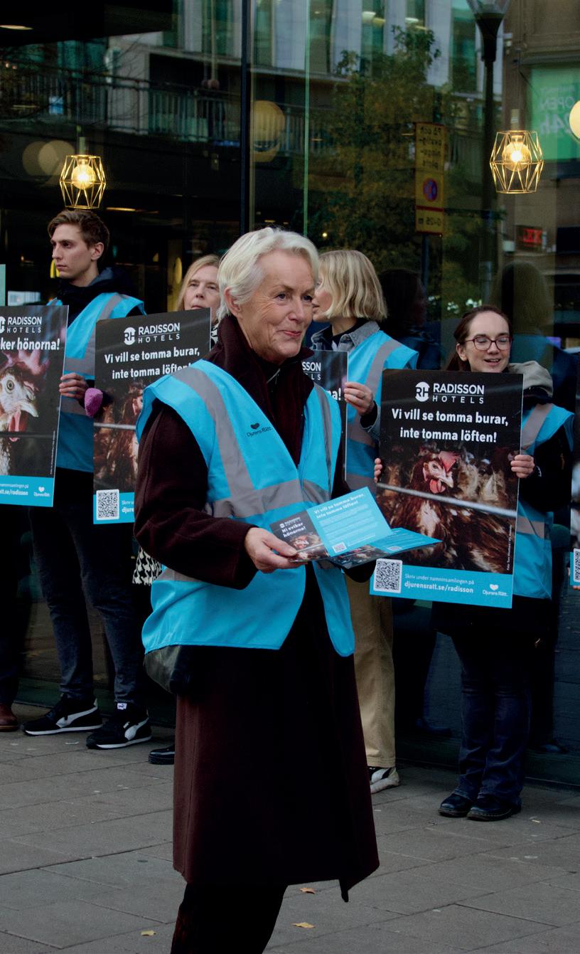 miljoner kycklingar i Sverige. Under årets sista månader visade vi också upp insidan av svenska grisfabriker. Fem olika anläggningar dokumenterades och polisanmäldes. Genom en stor annonskampanj nådde vi miljoner svenskar med bilder som visar grisarnas verklighet. Vi hymlar inte med vårt slutmål: en värld där djur respekteras som kännande individer med rätt till sina egna liv – en värld där kycklingar och andra djur inte har en plats på våra tallrikar.