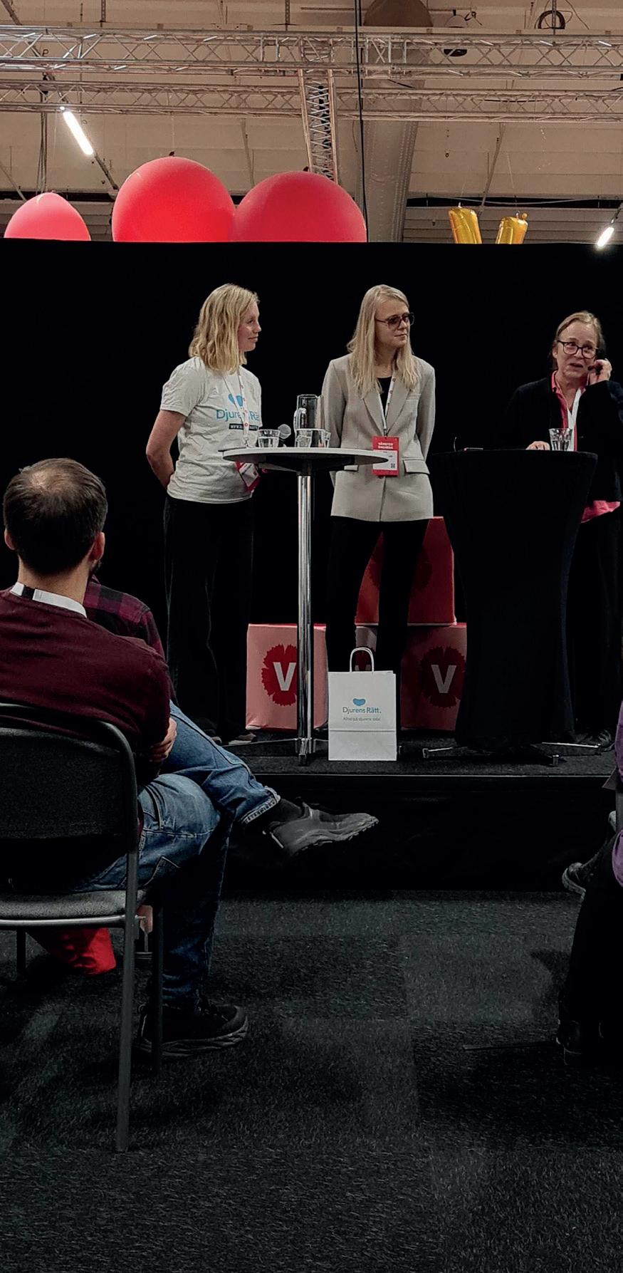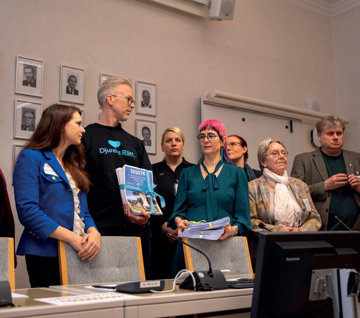 Vi har påmints om att kampen för djuren måste vara både målmedveten och långsiktig, men också om vikten av att ständigt vara på tå. Vi ser att djurindustrierna bedriver ett allt mer intensivt lobbyarbete. I höstas lyckades de till och med få EUparlamentet att säga nej till att kalla en vegoburgare för just burgare. Ett beslut som möttes av bred kritik och stor förvirring: Har inte EU viktigare frågor att diskutera?